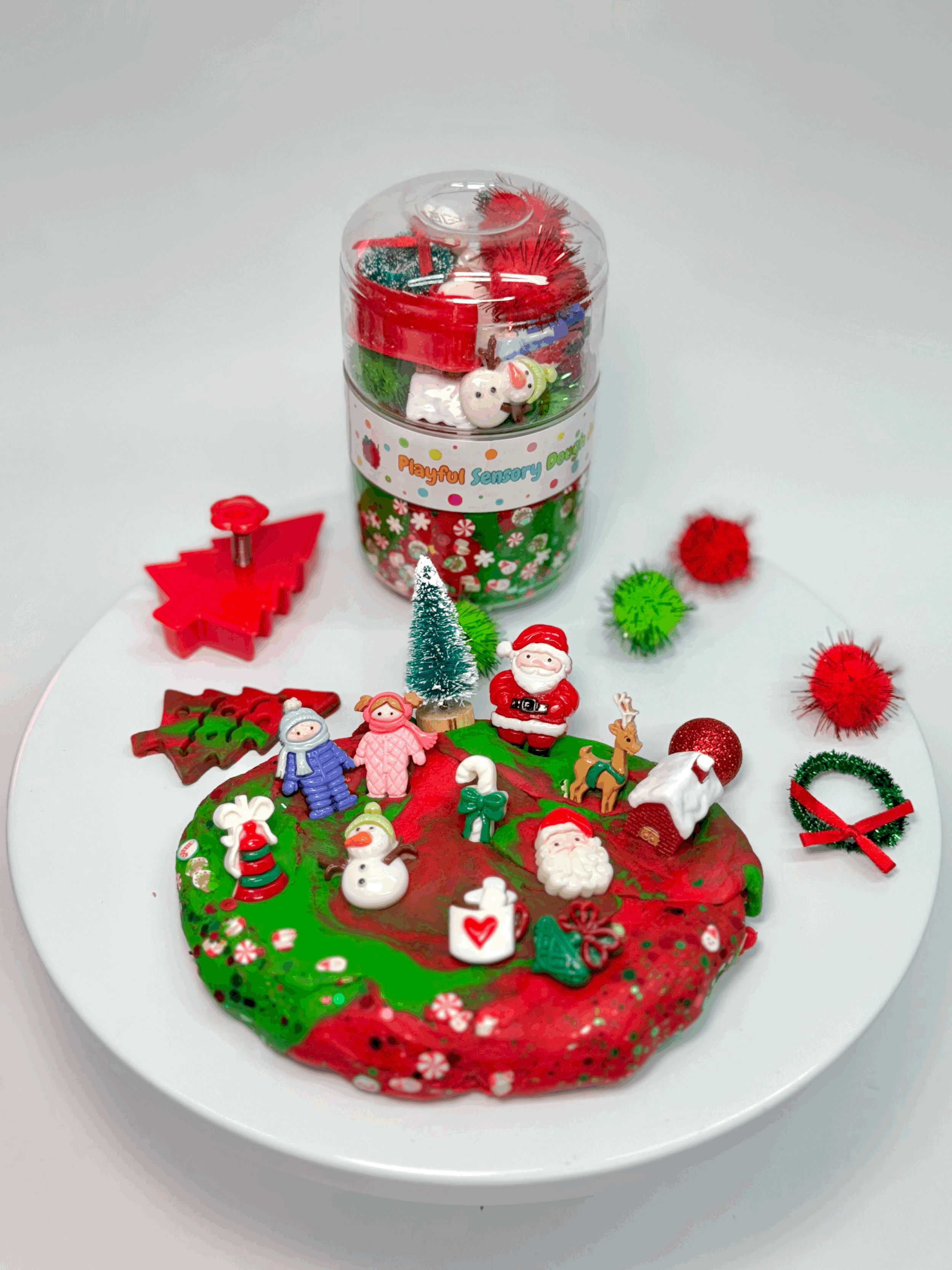 R'berry Sensory Dough Jar - On-the-Go Play & Calm - Christmas